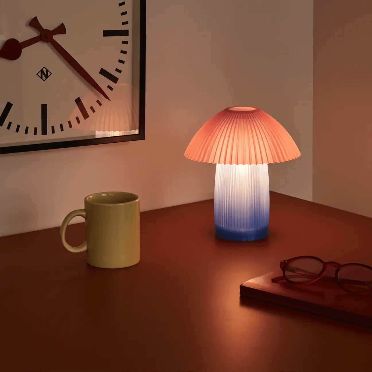 I like this specific colour scheme, as the pinkish hue of the top will soften the lamp's light and help drench the space in a warm, soft light that welcomes everyone into the space as if they are a friend from childhood.